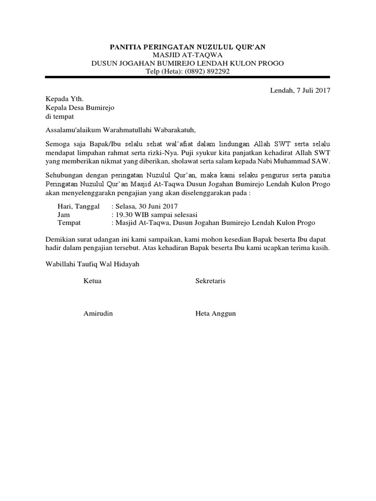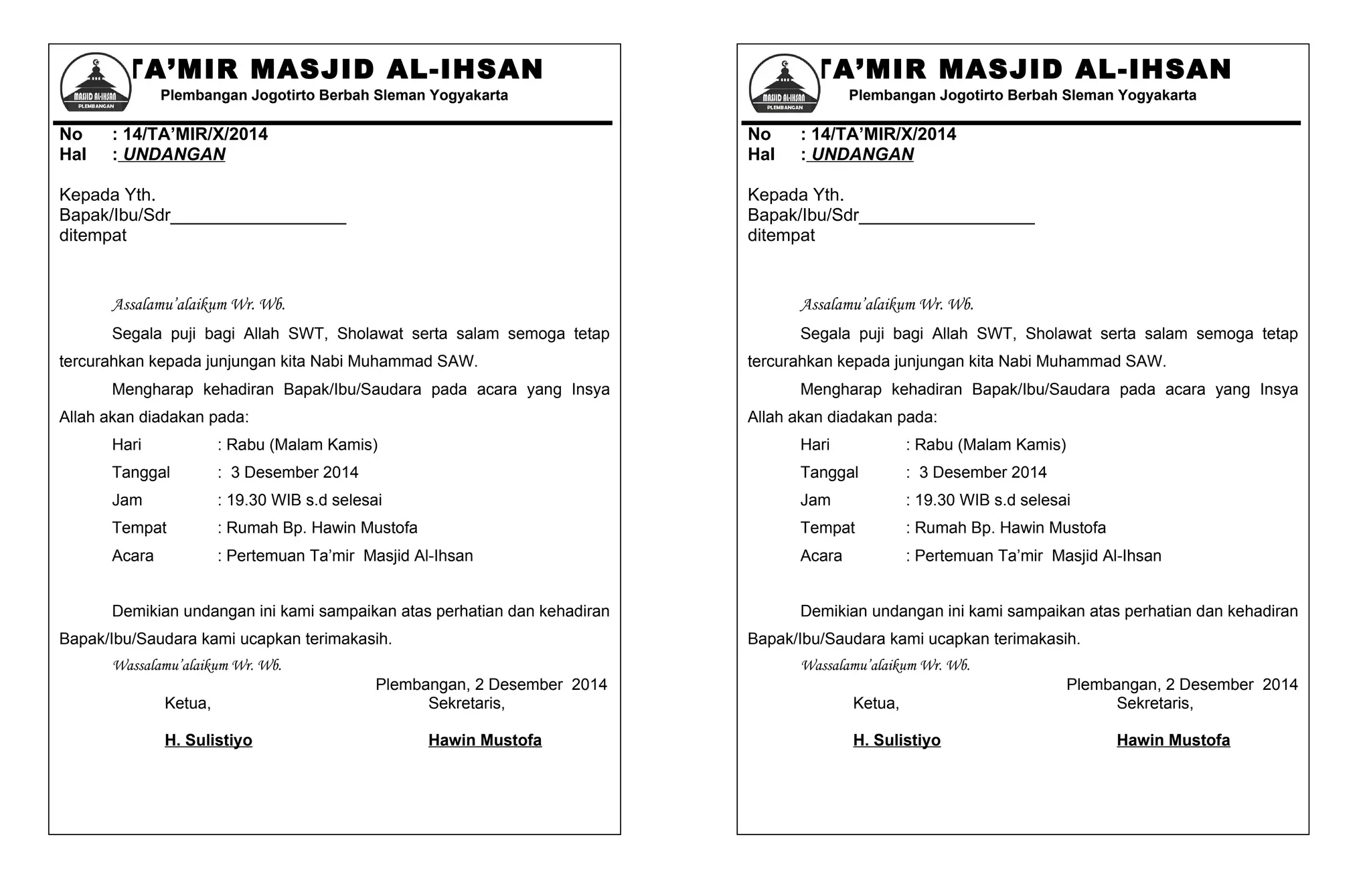 35 ++ Contoh Surat Undangan Acara Pengajian Undangan pengajian surat rutin resmi pernikahan belajaroffice bulanan terbaik gaya terbaru setengah masjid sumber